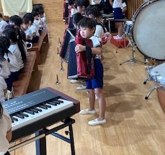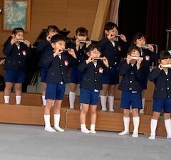 1月9日、音楽家の藤本先生が来園して音楽会に向けて歌、ハーモニカ、合奏などいろいろご