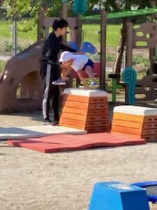 11月に入り、外での活動が気持ちよく、毎日の日課の一つである運動ローテーションの参観の1回目が今日行われました。