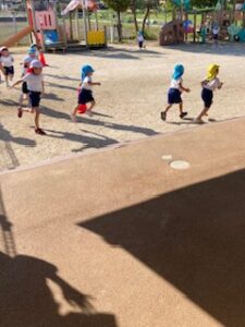 今月3回行う予定ですが、保護者の皆様には、都合の良い日に来て参観していただきます。お友だちと共に楽しく体を動かす様子を見てほしいと思います。